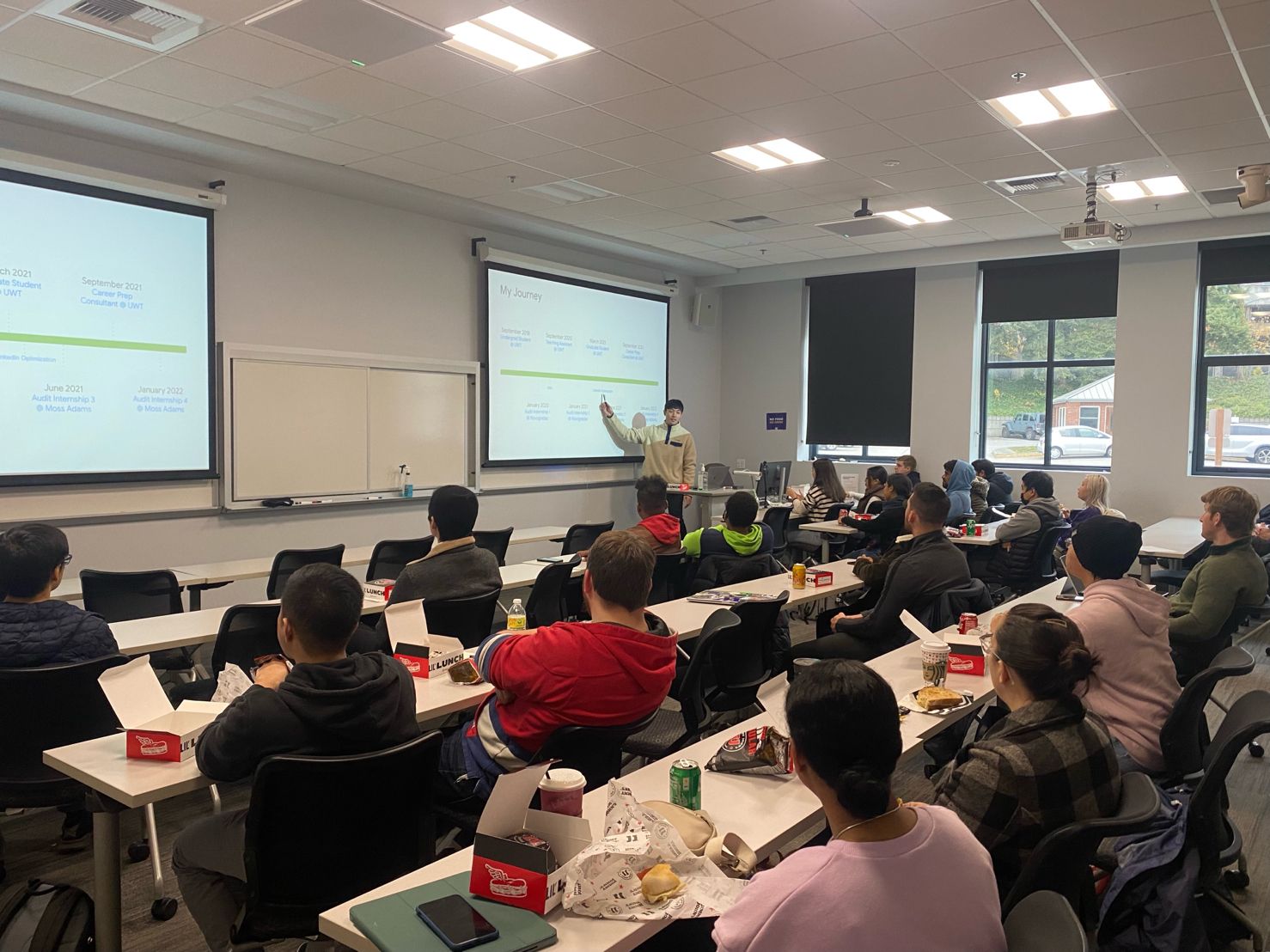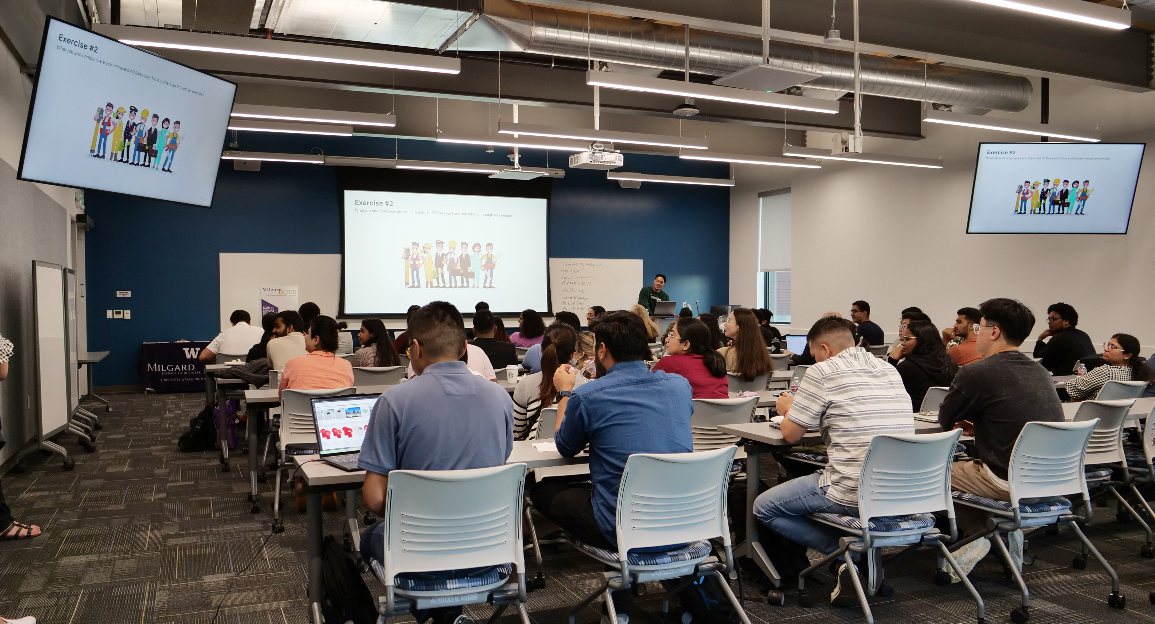 I led a lunch & learn focused on a day in the life at Google. I walked through typical job duties, challenges, and frameworks. There was over 40+ student attendees.